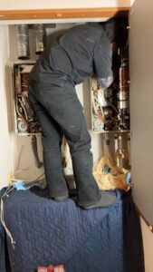 松戸市のマンションでベランダの高所に付いている給湯器を交換しました。