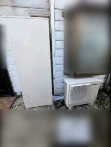 | 内容 | 松戸市日暮でダイキンエコキュートの交換を行いました。既存機種は薄型でしたが、コンクリート基礎工事後、角型を設置しました。EQX46XFV(貯湯ユニット・ヒートポンプユニット)BRC083F1(リモコン)KKC022E4(脚部化粧カバー)土間コンクリート増し打ち463.000円です。(貯湯ユニット・ヒートポンプユニット、リモコン、脚部カバー、工事費、撤去処分費、消費税込み) |