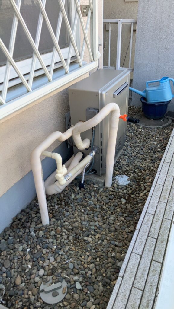 Homeお知らせ2026年3月1日 柏市で隣接型(浴槽の横穴が2つ)から据置型(浴槽の横穴が1つ)給湯器の交換をしました